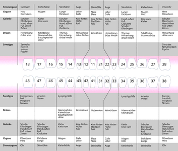 Reflexzonen sind Hautbereiche, die über Nerven oder Energiebahnen mit inneren Organen in Wechselbeziehung stehen, diese also reflektieren. An den Enden der Längssegmente (Hände, Füße, Mundschleimhaut, Ohrmuschel) befinden sich Reflexzonen. Bei den Quersegmenten stellt das Hautareal eine Reflexzone dar. Durch die energetischen Verbindungen können Störfelder im Körper entstehen und damit an Zähnen und am Zahnhalteapparat zu Folgeerkrankungen führen, und damit das Zusammenspiel von Zähne und Körper beeinflussen.